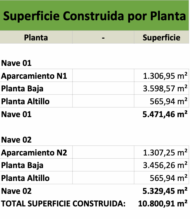 Las naves estan construidas sobre una parcela de 19.500 m2 aproximadamente.