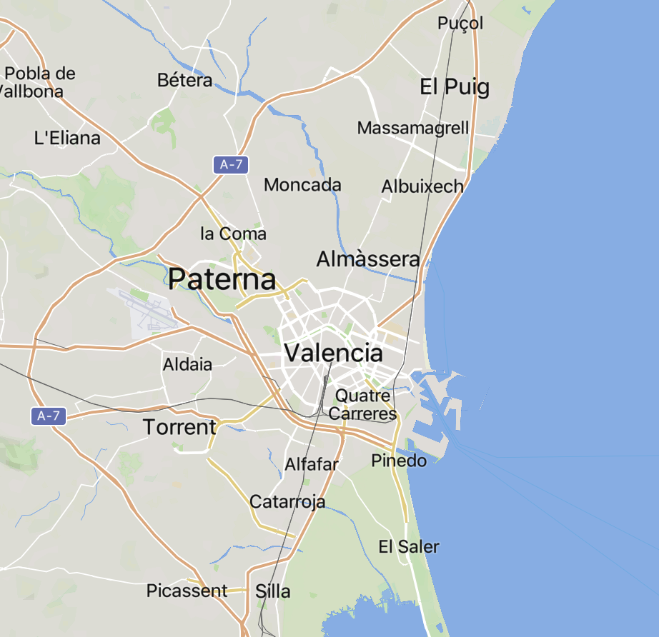 Puerto de Valencia a 25 km.