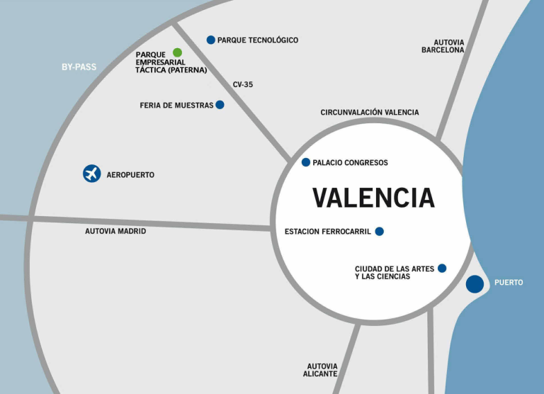 Este polígono industrial está ubicado en Paterna junto al polígono Fuente del Jarro. Táctica está, además, perfectamente conectada a la red de carreteras, tiene acceso directo a importantes autovías como la A-7, la V-30 y la CV-365 dispone de una excelente cobertura de medios de transporte público, al contar con parada de metro propia. En el polígono están ubicadas grandes empresas logísticas y de distribución, así como pequeñas empresas industriales y delegaciones comerciales de multinacionales.
